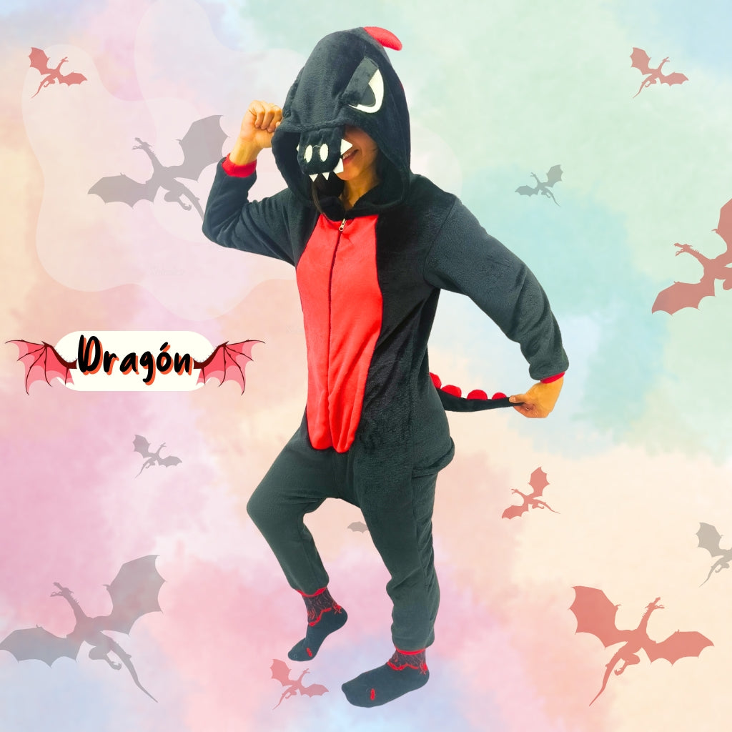 Una pijama kigurumi temática de Dragón - Dinosaurio para niños o adultos, una prenda diferente para complementar tu armario; cómodas para descansar en casa, para participar en fiestas temáticas y para los días calurosos, las puedes usar junto a tu pareja, hijos, familia o amigos.