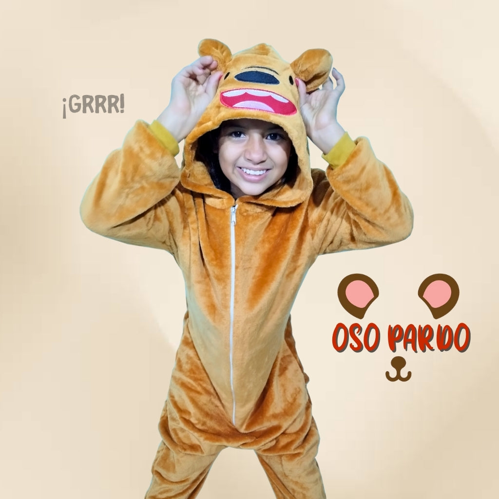 Pijama Kigurumi térmica temática enteriza para adultos y/o niños de Oso pardo de la serie Escandaloso, una prenda diferente para complementar tu clóset o el de tus hijos; cómodas para descansar en casa, para participar en fiestas temáticas y para las noches frías, las puedes usar junto a tu pareja, hijos, familia o amigos.