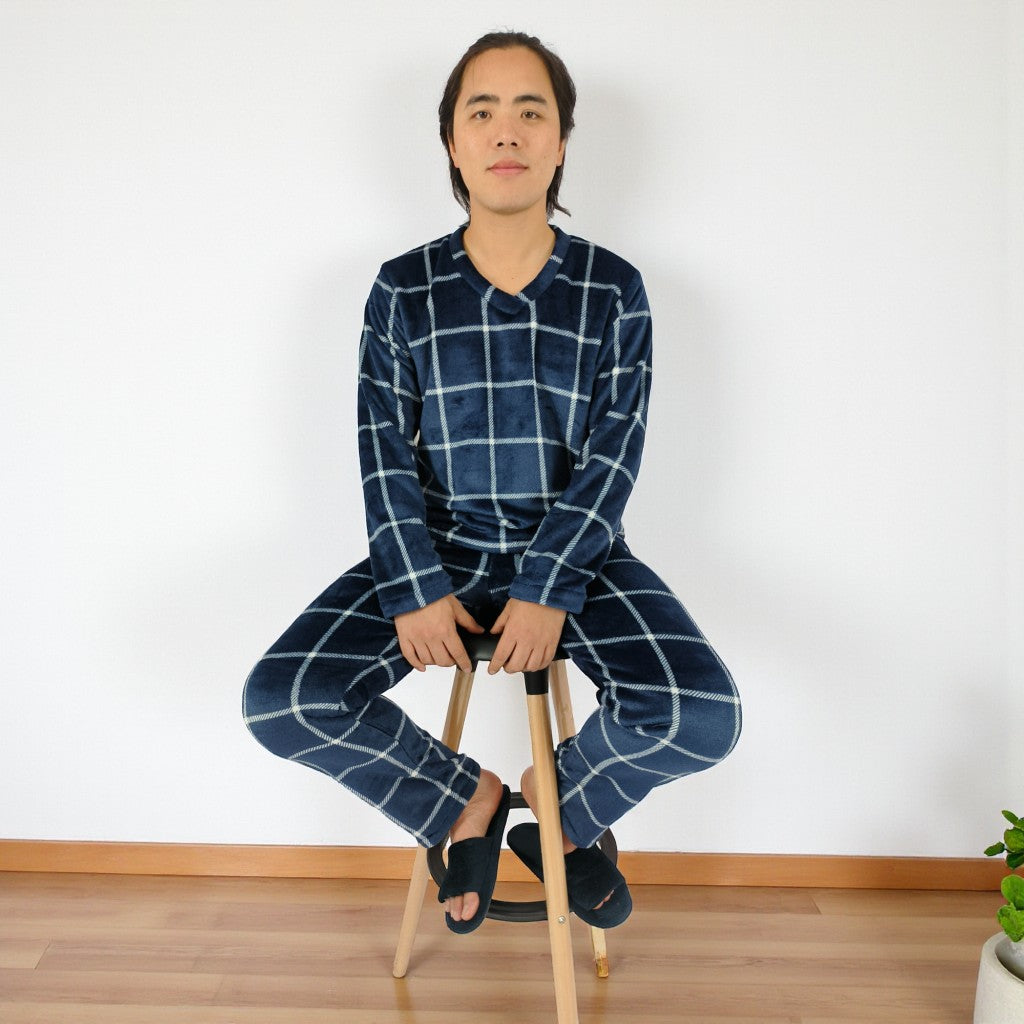 Pijama térmica de dos piezas sencilla para hombres, cómodas para descansar en casa, sentarse a leer, disfrutar de una película, un café, entre otras actividades, son ideales para las noches frías.